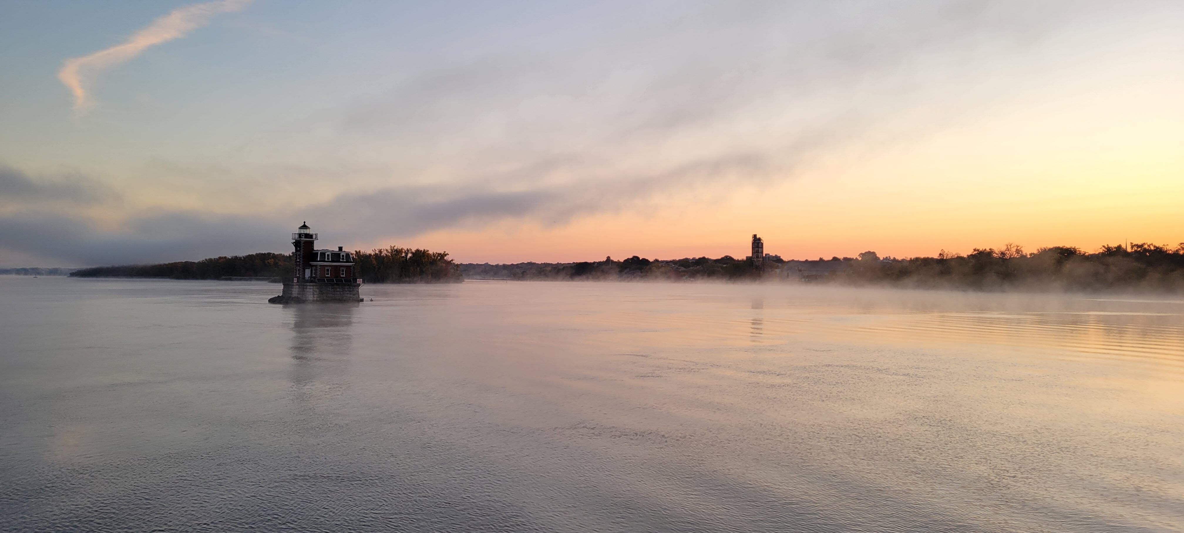 Cruising past the numerous red, orange, and yellow hues of fall foliage, National Geographic Sea Lion came upon the Hudson-Athens Lighthouse. Everyone got their cameras ready to capture the eerie scene as fog rose slowly above the Hudson River. After circling the lighthouse a few times, we continued toward the Catskills. We were given the opportunity to visit two state historic sites: Thomas Cole’s house and the house of Frederic Church, the Olana. The house and art studio hold original sketches and masterpieces by Thomas Cole, one of the original artists of America’s first art movement, the Hudson River School. Viewing the intricate pieces inspired a few individuals, and after soaking in the essence of Thomas Cole, some guests tried their hand at painting the surrounding landscape. We also got the opportunity to visit Olana, a Persian style historic house museum that was once owned by Frederic Church, another member of the Hudson River School. After getting our fill of these historic places, it was time to have lunch before our next adventure. In the afternoon, we went to Churchtown Dairy, a dairy farm that hosts an annual farmers market. Young calves, goats, and dairy cows were eager to receive affection. Petting a large fuzzy animal was the perfect ending to an incredibly enriching day.