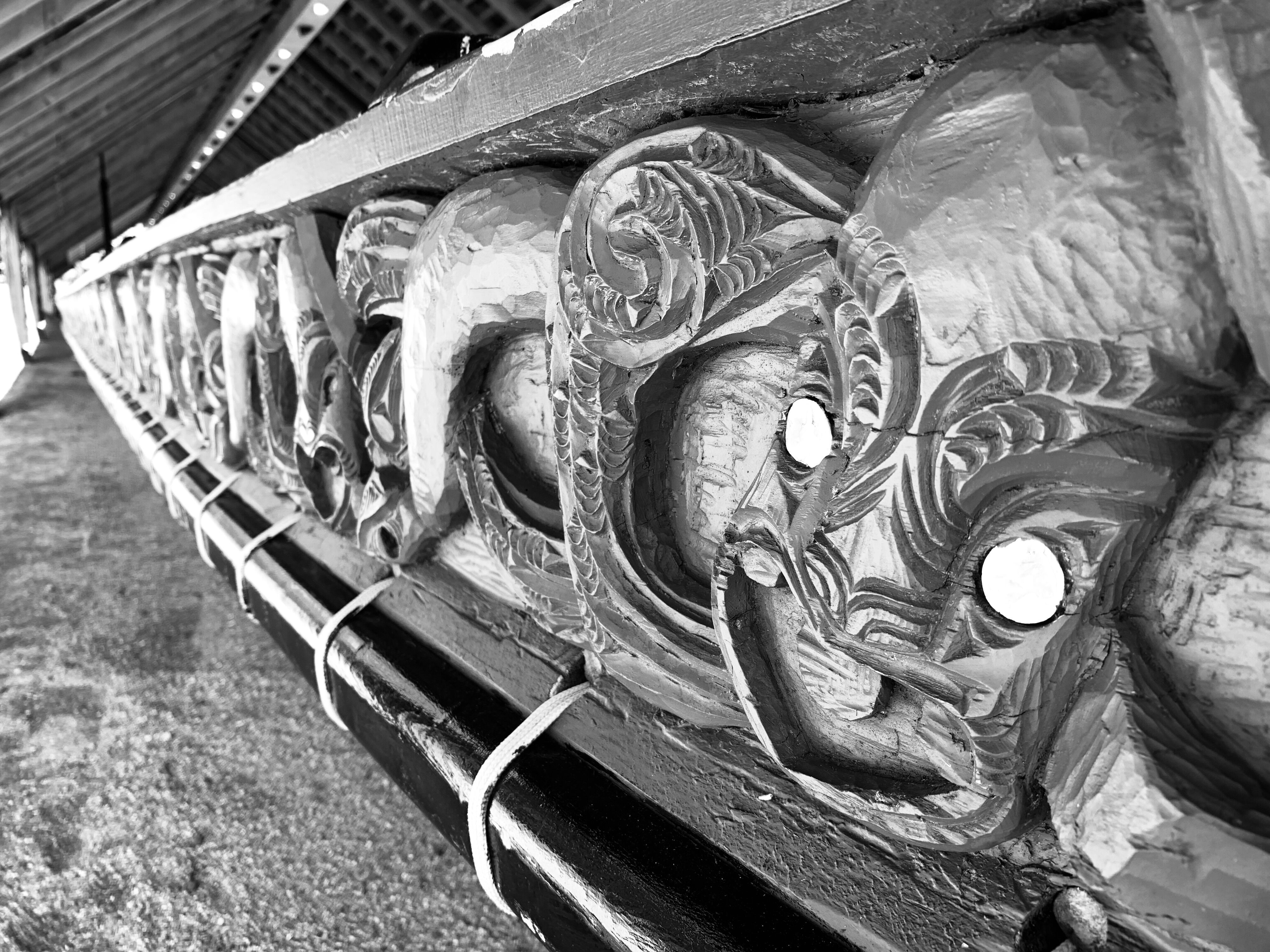 We started by visiting Ngātokimatawhaorua, the largest Māori war canoe in existence. It was built from kauri trees and first launched in 1940 to commemorate the 100th anniversary of the treaty. It is a powerful symbol of Māori unity, and it reflects the history of Kupe. The first Polynesian to land in Aotearoa, Kupe arrived in a voyaging canoe called Matawhaorua.