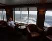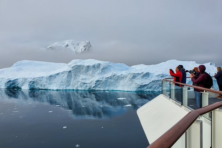 Morning onboard the National Geographic Explorer was challenging, with swirling wind and ample wave action. After several attempts to disembark the ship and go for an adventure off the ship, the final call was made by Captain Peik and Expedition Leader Lucho to stay onboard and cruise through large tabular icebergs on the ship’s way north.