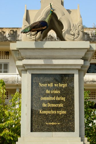 As we wandered around these magnificent structures with our guides, the sun was shining brightly. We cooled down in the shade aided by a pleasant breeze. After the Royal Palace we hopped on a bus for a quick trip to the National Museum where museum guides got us up close and personal with King Jayavarman. Next we arrived at Topaz, a fine dining establishment in the heart of downtown. We enjoyed an utterly luxurious multi-course meal before boarding the buses to continue on to S-21, the notorious detainment center where enemies of the Khmer Rouge were held for interrogation, torture, and confessions. Walking among the various buildings was a very sad experience, seeing where thousands of people were imprisoned before being transferred to the killing fields. Less than ten survivors made it through S-21 alive, and two of those survivors were there to talk to people and sign their books.