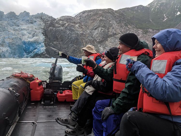 National Geographic Resolution awakened in the calm embrace of Liefdefjorden, the fjord's surface as still and soft as a cottony mirror. Guests had the choice of exploring the serene waters by kayak or enjoying the breathtaking sight of tidewater glaciers during a Zodiac cruise. The reflections on the water were truly stunning, offering yet another rich and unique perspective on the magic of Svalbard. The air was alive with birdlife such as king eiders, long-tailed ducks, great skuas, and arctic terns circled above and settled on ancient moraines, adding life and sound to the Arctic stillness. For the adventurous, the legendary polar plunge was on offer, an exhilarating dive into the icy waters. Seven-year-old Tulia, full of spirit, even jumped several times alongside her father, Kimmo! After another epic lunch onboard, guests gathered for a disembarkation briefing followed by an inspiring lecture from National Geographic photographer Sergio Pitamitz, who shared stories from his ongoing work in visual storytelling. Later, once the relaxing wine and cheese teatime came to its end, a pod of white-beaked dolphins unexpectedly appeared, breaching near the ship and playfully, inviting the guests to the bridge, once again. Once the marine mammals left, delaying the start of the captain’s farewell cocktail, all guests and staff members enjoyed the emotional slideshow put together by Giulia Ciampini with all the pictures collected from our 14-day adventure.