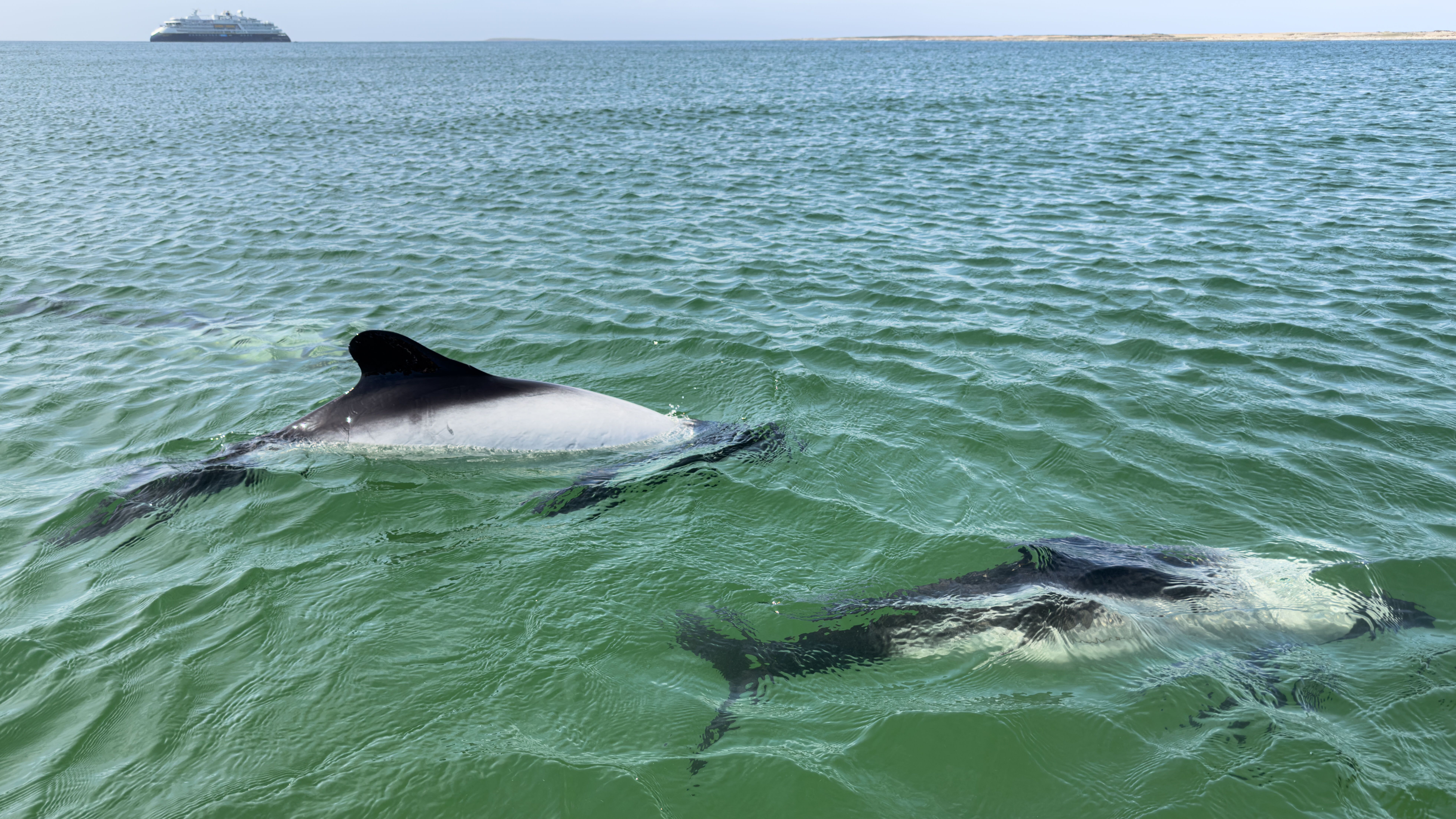 When we board our Zodiacs to return to the ship, my somewhat macabre thoughts are quickly replaced by the joy brought by a playful trio of Commerson’s dolphins circling our little boat. They stay with us all the way back to the ship, riding our wake, circling us like a curious litter of puppies, eager to play, not a care in the world.