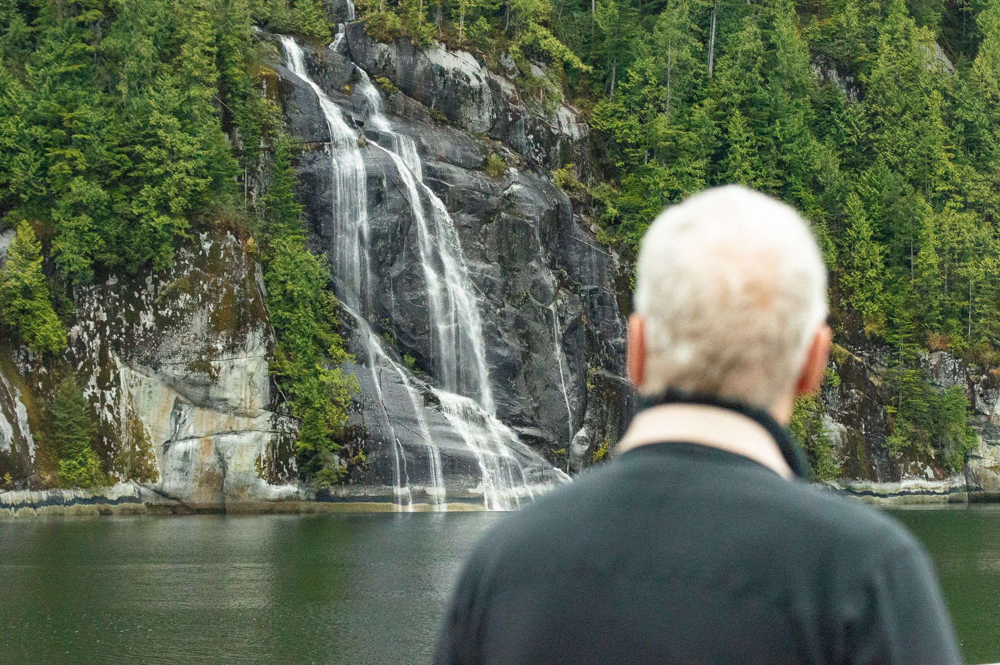 This morning we continued our remarkable voyage through British Columbia searching for wildlife in the Klewnuggit Inlet. We carefully crept through the narrow waterway searching for even a glimpse of the elusive “spirit bear.” Sheer cliffs rose high above the ship unlocking embracing views of plunging waterfalls at every turn.
