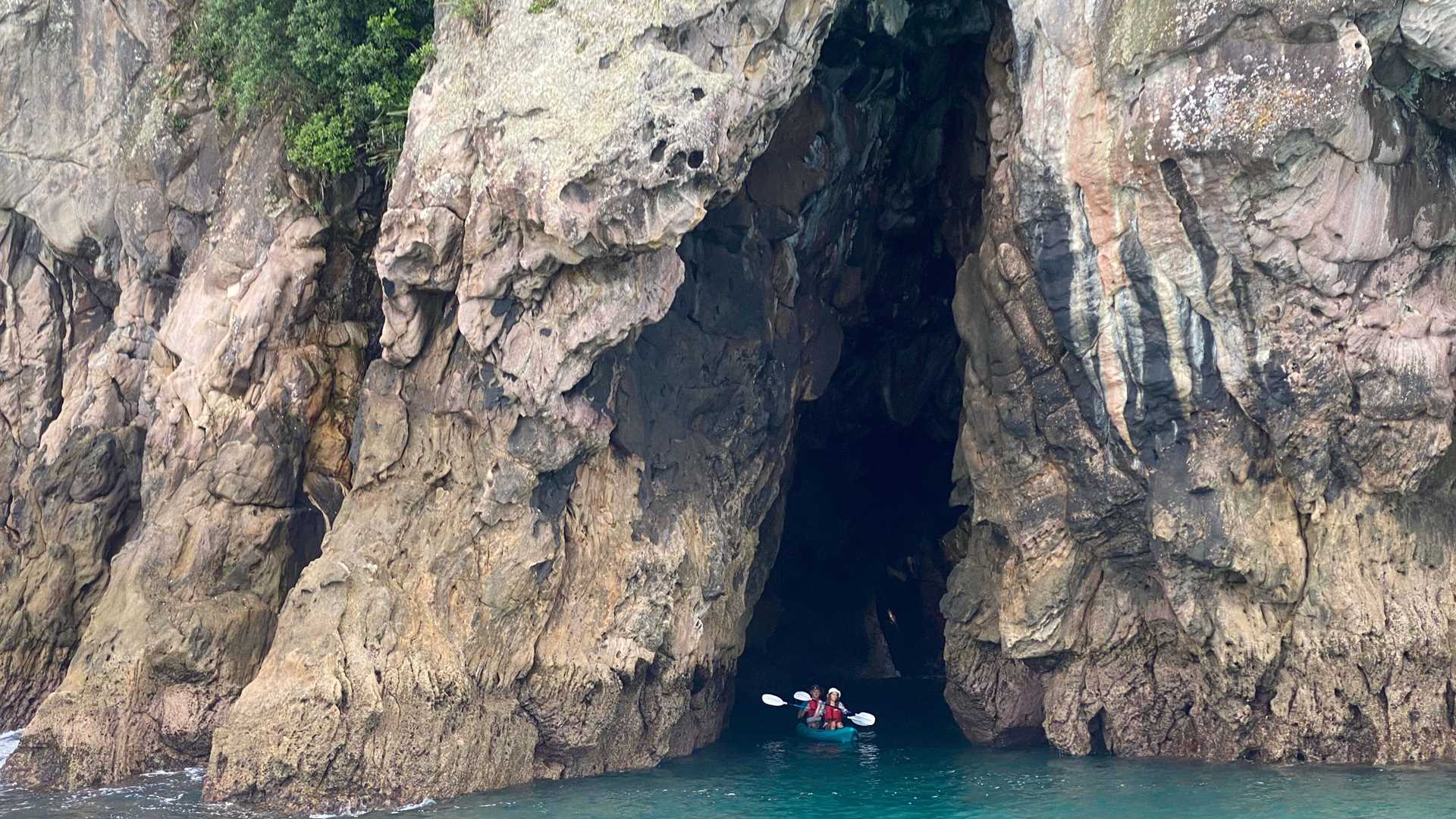 As the sun broke over the horizon, National Geographic Orion set anchor in Whangamata on the northeastern side of North Island. Impressive geological sea stacks were dotted around the ship, creating an epic landscape to explore via Zodiac and kayak. After our breakfast, we set out to explore the small town. Activities included shore walks, bird watching, a journey to observe the local scenery, and a kayaking adventure that forded a narrow crevasse through a mountainous island. So narrow, in fact, that not even our Zodiacs could make it through. It was a lovely day, with many more to come.