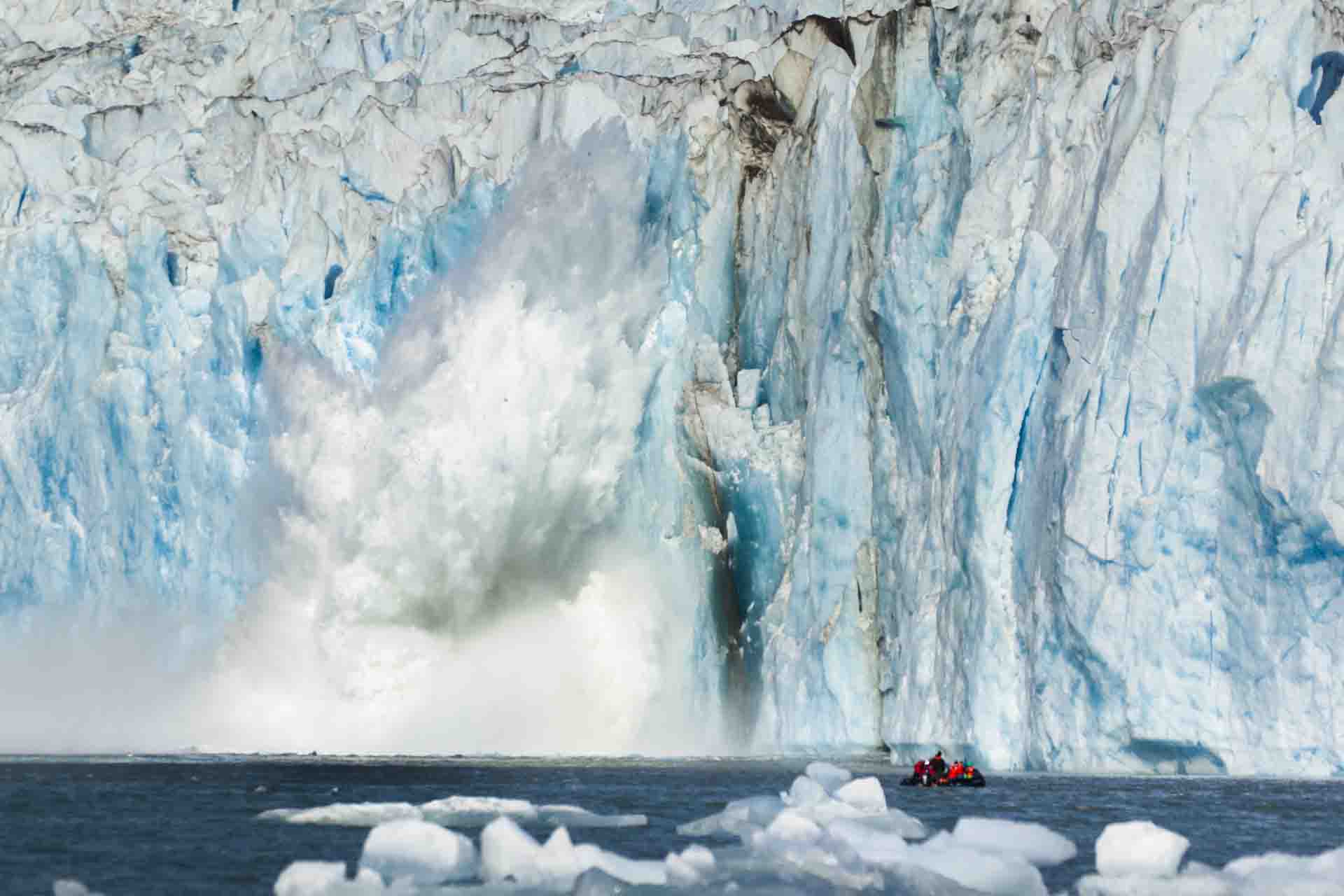 There was stunning scenery in all directions. Precipitous walls of rock soared skyward; snow and ice-fed silty streams cascaded to sea level. U-shaped valleys and rounded topography are evidence of a past ice age, when there were a few thousand feet of ice covering the landscape. We cruised toward the face of the glacier in our expedition inflatable boats, keeping a safe distance in case of calving ice. Our patience was rewarded with several episodes of “white thunder”! A few harbor porpoises, harbor seals, Arctic terns, and a variety of gulls share this area for food and reproduction – essentials for all living organisms.