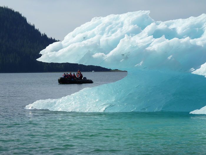 Our morning of glacier watching rewarded us with two large calving events and excellent views of harbor seals hauled out on ice. These animals seek refuge from predators on the ice floes at the base of tidewater glaciers and bear their pups in the relative safety of the ice. But tidewater glaciers are receding rapidly, and we must wonder what will happen to these creatures when, at last, the glaciers cease to deposit ice into the fjord.