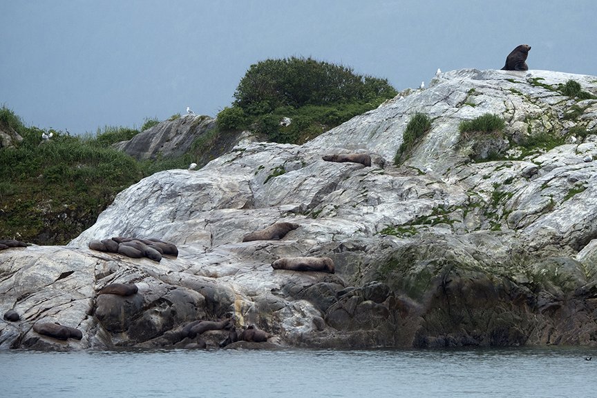 Well, luckily that intense sunshine of yesterday yielded to softer, more normal Southeast Alaska clouds and rain! We spent the morning in Williams Cove, a wonderful place to introduce this part of Alaska while surrounded by beautiful temperate rainforest and immersed in mud. National Geographic Sea Lion then made her way further inland in dramatic Tracey Arm fjord where we took to our trusty, icebreaker rubber boats for a tour through the ice to the front of South Sawyer glacier. On our way back down Tracey Arm fjord, we came upon a large ‘cinnamon’ black bear feeding in the intertidal on algae and barnacles. What a day!