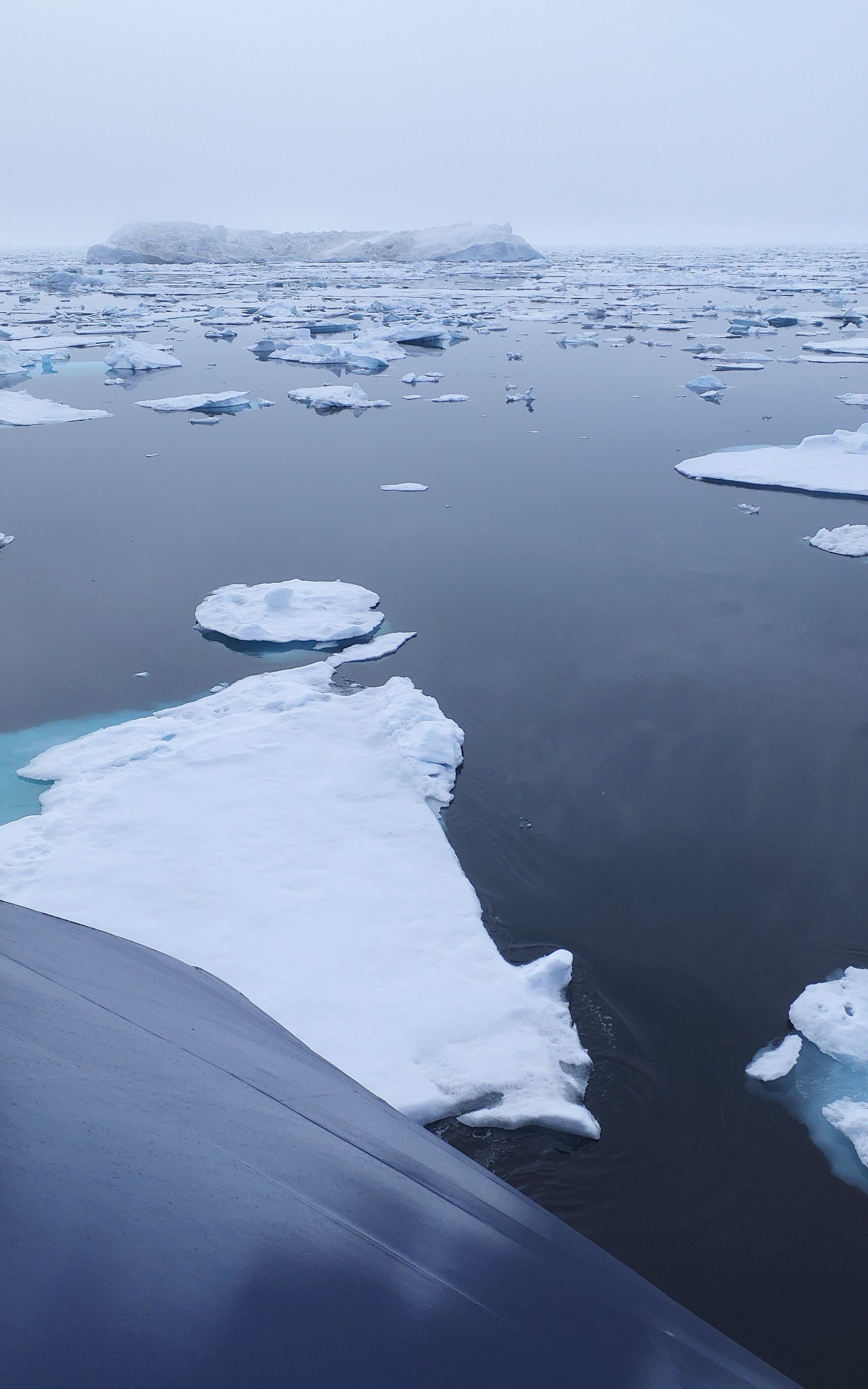 As we sailed up the river, we learned about the history of Wrangell and the surrounding area. We stopped at a cabin for a break and stepped into this incredible old growth forest. Once back on board, we sailed up the river and observed the mountain range in the background. As we arrived at Shakes Lake, we could finally see the beautiful ice field in front of us. This area is dotted with icebergs that are grounded due to the sandbar, and we were given the chance to actually walk across the iceberg. This was a special moment that will not soon be forgotten.