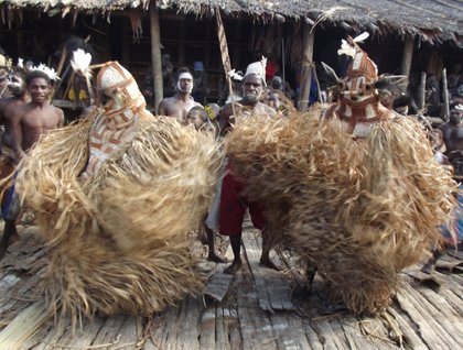 Soon after sunrise, we anchored offshore from Yahun-Yufri villages. It is a complex composed of two villages, located virtually side by side. Amazingly, the inhabitants have been feuding for almost 20 years, but are inextricably linked through several previous marriages and necessary trade. We learned that our visit seemed to be an impetus for a rather heartwarming coming together of the two groups. Upon arrival, we were greeted with an impressive show of many war canoes that were paddled around and in between our Zodiacs. In honor of our visit ashore, for the first time in decades, a magnificent dance was performed in front of the Yufri jeu (longhouse) using all the Spirit Masks possessed by both villages. We were witness to a wondrous event seldom seen by outsiders. These spirit masks are each individually sacred and only a few are seen even in museum collections.