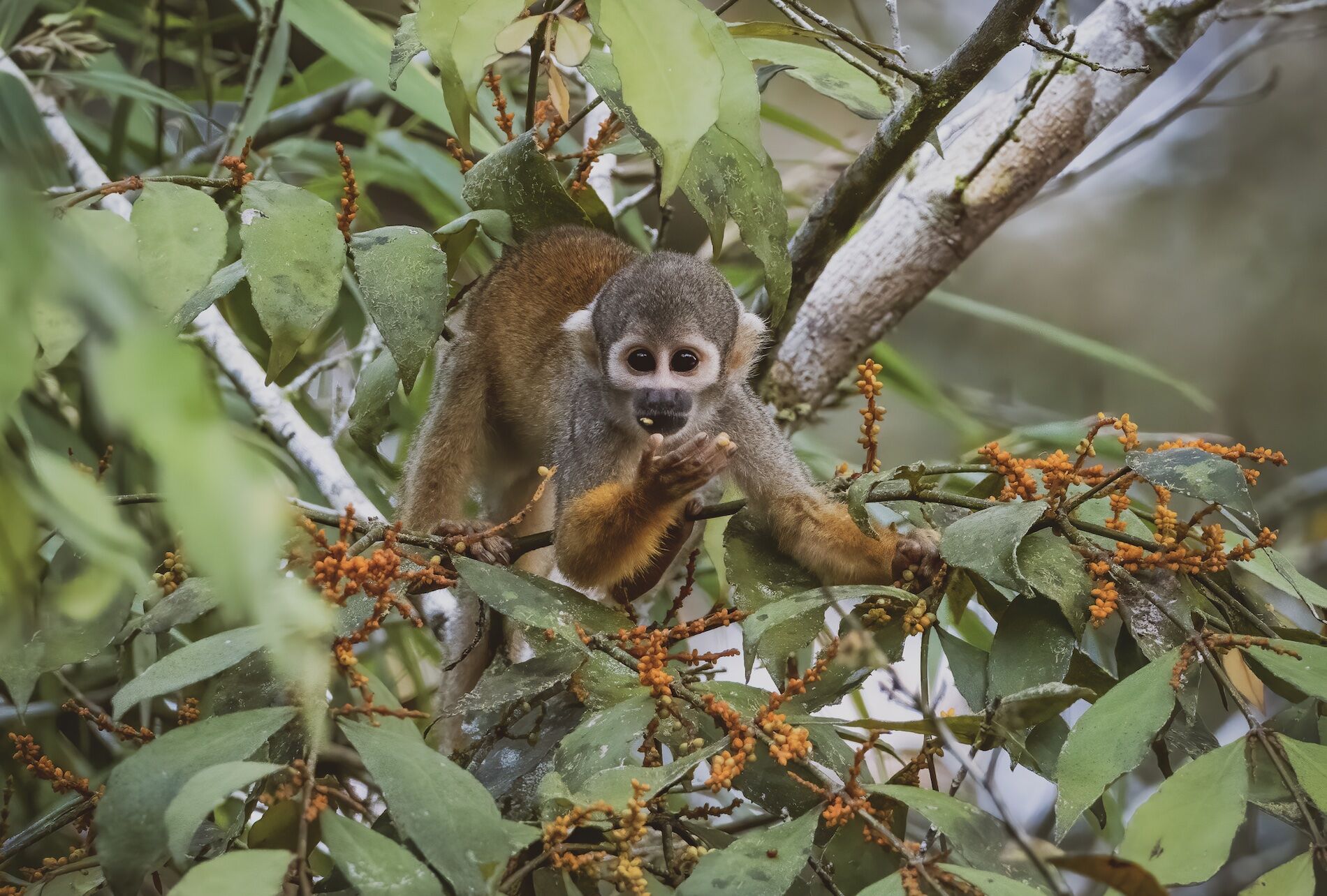 Delfin II continues to navigate upstream along the Ucayali River. Our visitor site this time was Yanallpa Creek. We left the ship early in the morning, and our skiffs ventured deep into the lush and misty forest. We spotted squirrel monkeys and saddleback tamarin monkeys. They were very close and behaved almost fearlessly towards us. Right after this, we received the most precious gift from the forest: “tropical rain.” We made our way back to the ship for a well-deserved breakfast.
