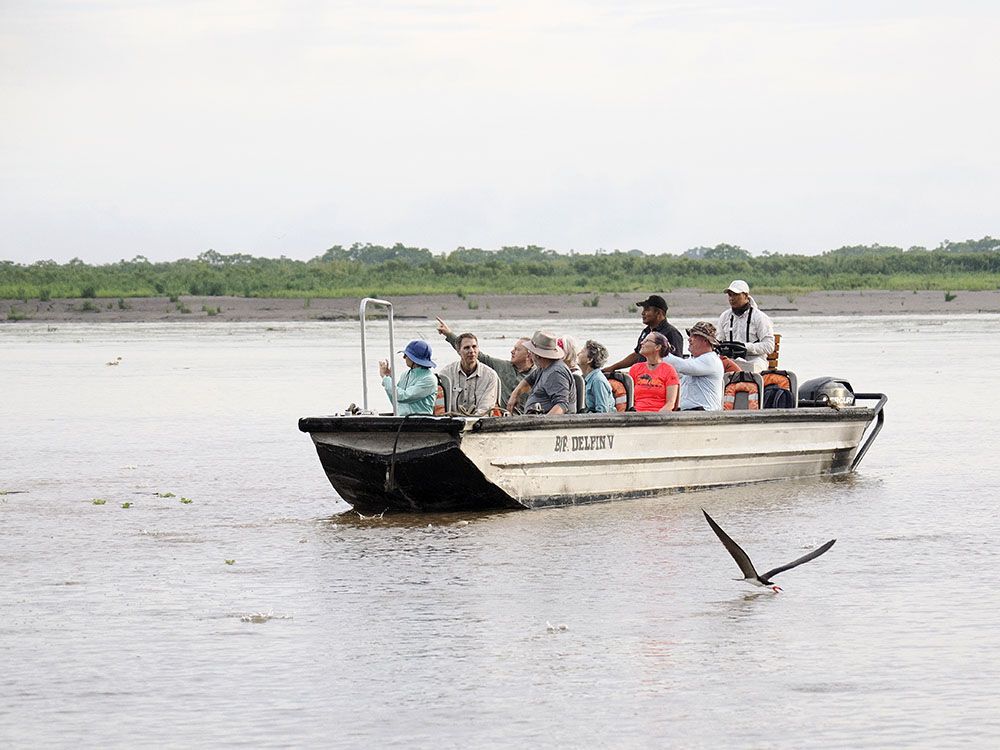 There was no need to go far as the greatest show of the Amazon took place just around Delfin II. It was 0500 am, and there was a feeding frenzy around us and everywhere we looked. By 0600 am, we boarded the skiffs and headed into the depths of the jungle, following the path of the Yanayacu River, home to pods of pink river dolphins and various species of birds. The freshwater mammals are well adapted to the river’s murky conditions. In this environment, a good echolocation system is vital to finding food and navigating among the trees and murky waters.