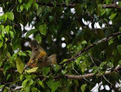In the afternoon, we explored another tributary of the Ucayali River, called Magdalena River. Great surprises awaited us as we explored this picturesque area of the flooded forest. The river banks are dotted with secropia trees and aguaje palms, as well as many hundreds of other types of grasses, trees and bushes. These often harbor nesting squirrel monkeys, yellow rump caciques, and oropendolas.