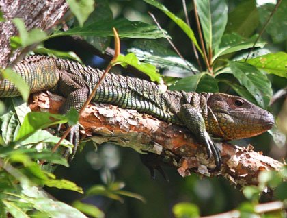 Our morning skiff ride was quite productive; within a few minutes, we were already observing a very “active” three-toed sloth. Although sloths are slow-moving animals, this particular individual was making its way down its tree and showing us all his climbing abilities.