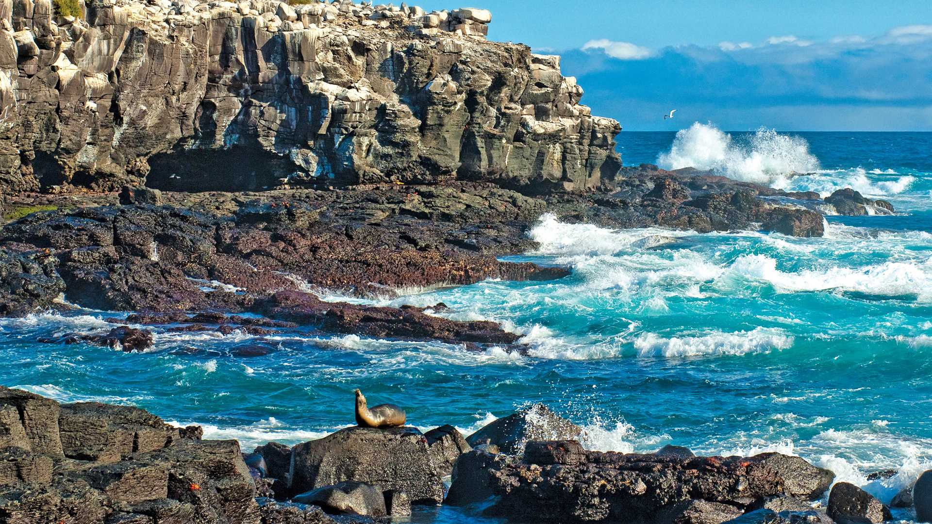 When you disembark at Punta Suárez on Española Island for a scenic hike along the coast, prepare to be wowed by wildlife. There are so many marine iguanas, Galápagos sea lions, swallow-tailed gulls, blue-footed boobies, and Nazca boobies that you actually have to watch your step. Even more striking? The feeling of pure wonder you experience as you witness waved albatross circling above, preparing to land. Or blue-footed boobies engaging in their epic mating dance. And the view, once you reach the furthest point in your hike—a promontory of dramatic cliffs with an oceanside blowhole rhythmically spouting a geyser of water against a backdrop of pounding waves—will capture your imagination and leave you with memories to last a lifetime.