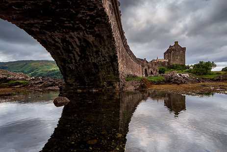 Eilean Donan Castle on Loch Duich has a layered—and juicy—history going back to the Celtic saint, Donnan of Eigg (martyred in 617 A.D.), for whom the island is named. The castle was founded in the 13th century, but the Royal Navy blew it up in 1719 during a Jacobite rebellion and left it a pile of rubble for 200 years. Between 1919 and 1932 it was finally rebuilt, and the bridge was added at that time. (Building bridges out to your defensive castle on an island in medieval times was never a good idea.) Now restored, Eilean Donan is endlessly popular with photographers, movie producers and wedding parties—for obvious reasons. (Hope for brooding skies like this to set a proper Highlands mood.)